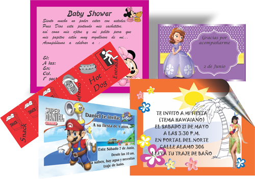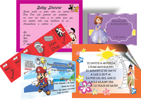 Impresión de invitaciones con tus personajes favoritos, formales y para cualquier ocasión o evento.